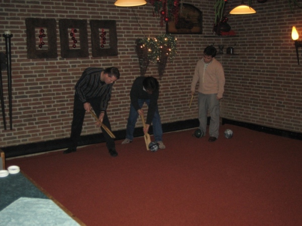 All’interno del locale è presente un gioco tipico della zona. Si tratta di un campo di gioco recintato con dei bordi in legno (stile bocce), di una palla in metallo (pesante circa 4kg), di una paletta in legno con cui tirare la palla e di un anello (anch’esso in metallo) conficcato nel terreno. Per certi versi il gioco ricorda il cricket ed il suo scopo è infilare la palla dentro l’anello. Diciamo che se in Olanda si divertono così, stiamo messi proprio male! 😀