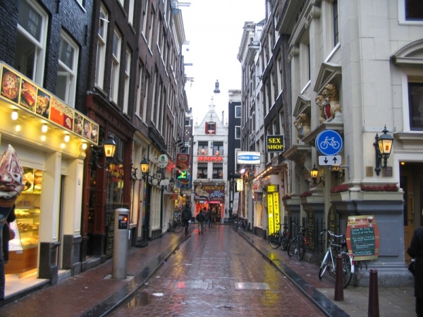 Devo dire che Amsterdam non mi ha impressionato! Insomma, da Eindhoven potevo comunque aspettarmelo, dato che si tratta di una città “industriale” sviluppatasi soprattutto grazie alla presenza della Philips. Ma da Amsterdam mi aspettavo di più. E la giornata pessima (ha piovuto senza tregua tutto il giorno!) non ha certo contribuito ha migliorare l’immagine che ho avuto della città . Insomma, visitato il Red Light District (sexy shop e ballerine in giro…), mangiamo (…compresa una torta interessante alla fragola… slurp!) e prendiamo un autobus che ci porta nella zona del museo dedicato ai pittori olandesi dell’800 (e dintorni). E’ infatti in questo periodo che l’Olanda raggiunge il suo massimo splendore grazie alla sua presenza coloniale nell’oceano indiano e nelle isole del pacifico. Un periodo che si riflette anche nell’arte, in pittori come Rembrandt. Neanche il museo però mi ha impressionato! Non riesco a vedere il museo di Van Gogh (ero l’unico della comitiva a non averlo visto…. che palle!!). Passiamo un altro po’ di tempo in giro in centro ad Amsterdam (sempre sotto la pioggia), mangiamo una bistecca in un ristorante messicano (era messicano?) e ci dirigiamo alla stazione… la nostra giornata per Amsterdam è finita. Ci salutiamo (chissà quando ci rivediamo) e prendiamo il treno di ritorno.