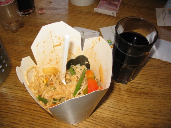 Questo è il giorno per visitare la città . Ci svegliamo relativamente tardi, andiamo al mercato (è sabato), qualcosa di molto simile a quelli che siamo abituati a vedere dalle nostre parti. Dopo aver visitato il mercato, facciamo un giro in centro. Mangiamo roba asiatica… sono ancora vivo. Immaginatevi un cestino di carta ripieno di noodles (una sorta di spaghetto orientale), pollo, spezie, funghi, carote, pomodoro, fagiolini (accuratamente evitati!)… vabbo’, faccio prima a mettervi una foto, potete smettere di immaginare. Mi è stato descritto come il cibo di Zazà , il compagno di Lupin. Continuiamo il nostro giro in centro guardando il Media Markt (credo stesso gruppo che possiede Media World in Italia, a giudicare dal logo delle insegne), il centro commerciale e tutte le vie del centro. E’ periodo natalizio e c’è un botto di gente, anche se pare che ve ne possa essere molta di più in altre occasioni.